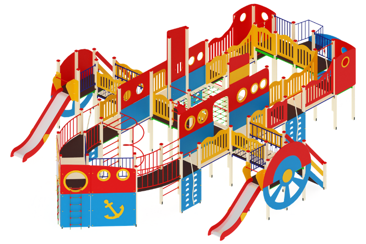 Детский игровой комплекс Пароход Горки 1200, 1500, 2000 15180х9640х4000
